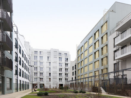 Christophe Van GerreweyIn Brussels, a municipal neighbourhood development designed by AgwA provides sports facilities for young people – though access is painstakingly controlled